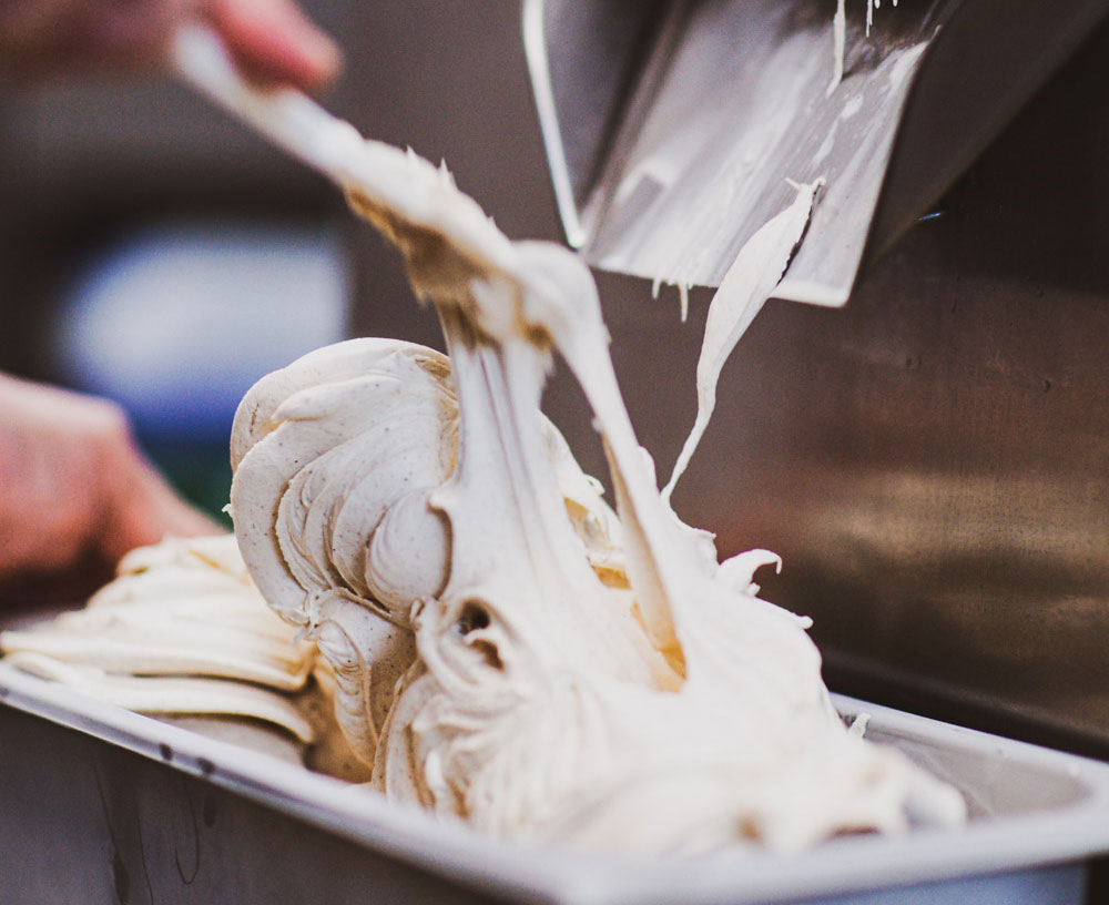 Wir sind verrückt nach Eis und erfahrene Speiseeis Produzenten. Sorten wie unser Cashew-Minze-Eis mit Schokolade oder das Sahne Kokos Eis mit frischer Kakaomasse sind nur zwei Beispiele unserer leckeren Sorten.