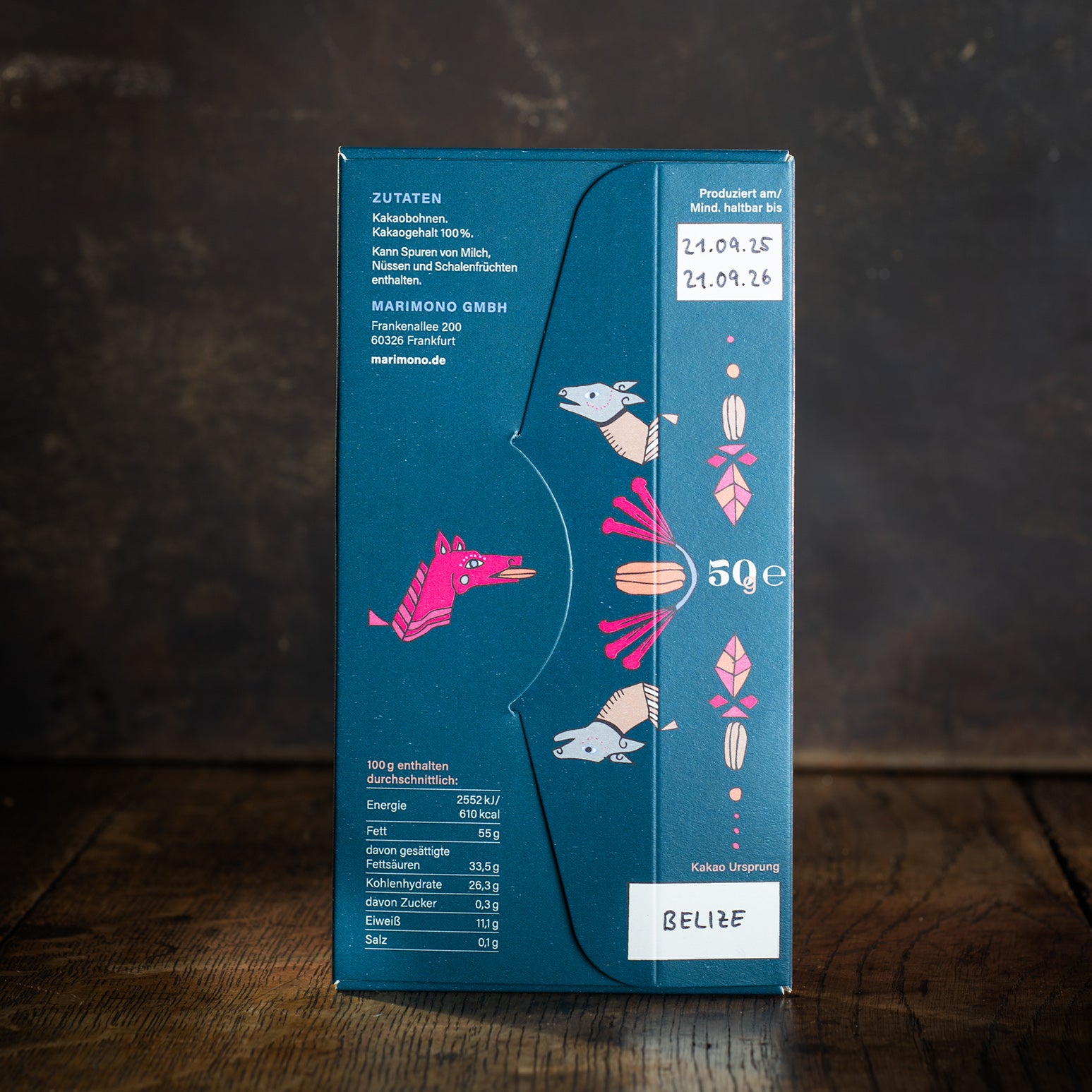 Unsere 100 % Maya-Mountain-Schokolade besteht nur aus einer einzigen Zutat: feinste, schonend geröstete Bio-Kakaobohnen aus dem Maya Mountain Cacao-Kollektiv in Belize. Keine Zusätze, kein Zucker – reine Herkunft, pure Identität.